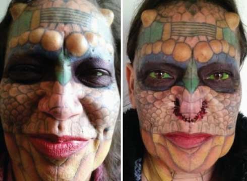 “I have eight horns on my forehead; I have had my ears removed; my nose reshaped; most of my teeth removed “I’ve had the white-part of my eyes stained, my tongue bifurcated, my whole face is tattooed and I’ve had some scarification and branding on my chest and wrist.
